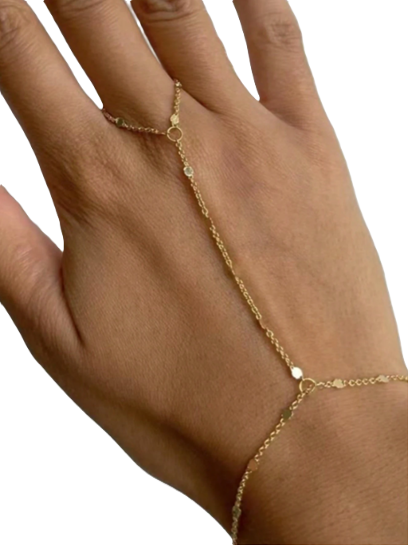 Medida: 16 cm pulsera,largo de cadena 6.6 cm y anillo 6 cm
