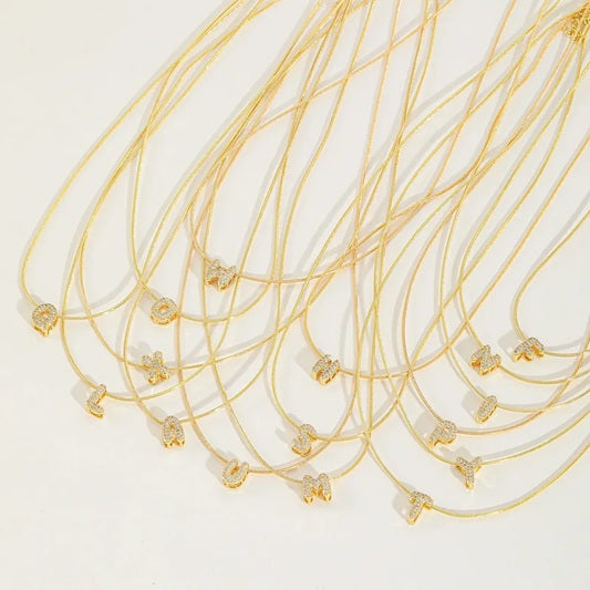 Collar de cadena snake en acero inoxidable y dije de letra mini con zirconias en chapa de oro 18K.