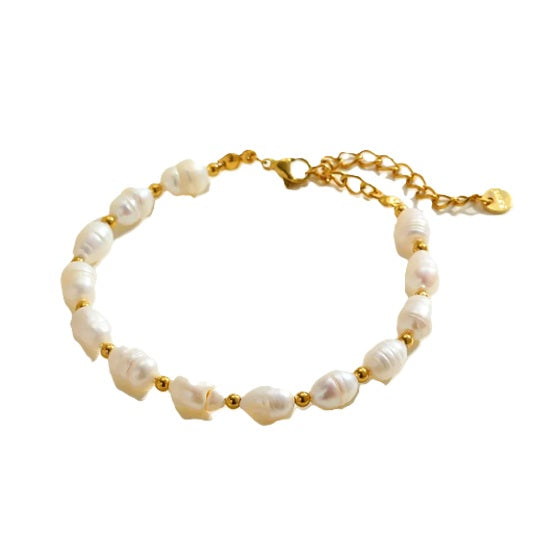 Pulsera de cuentas de acero inoxidable y perlas cultivadas.