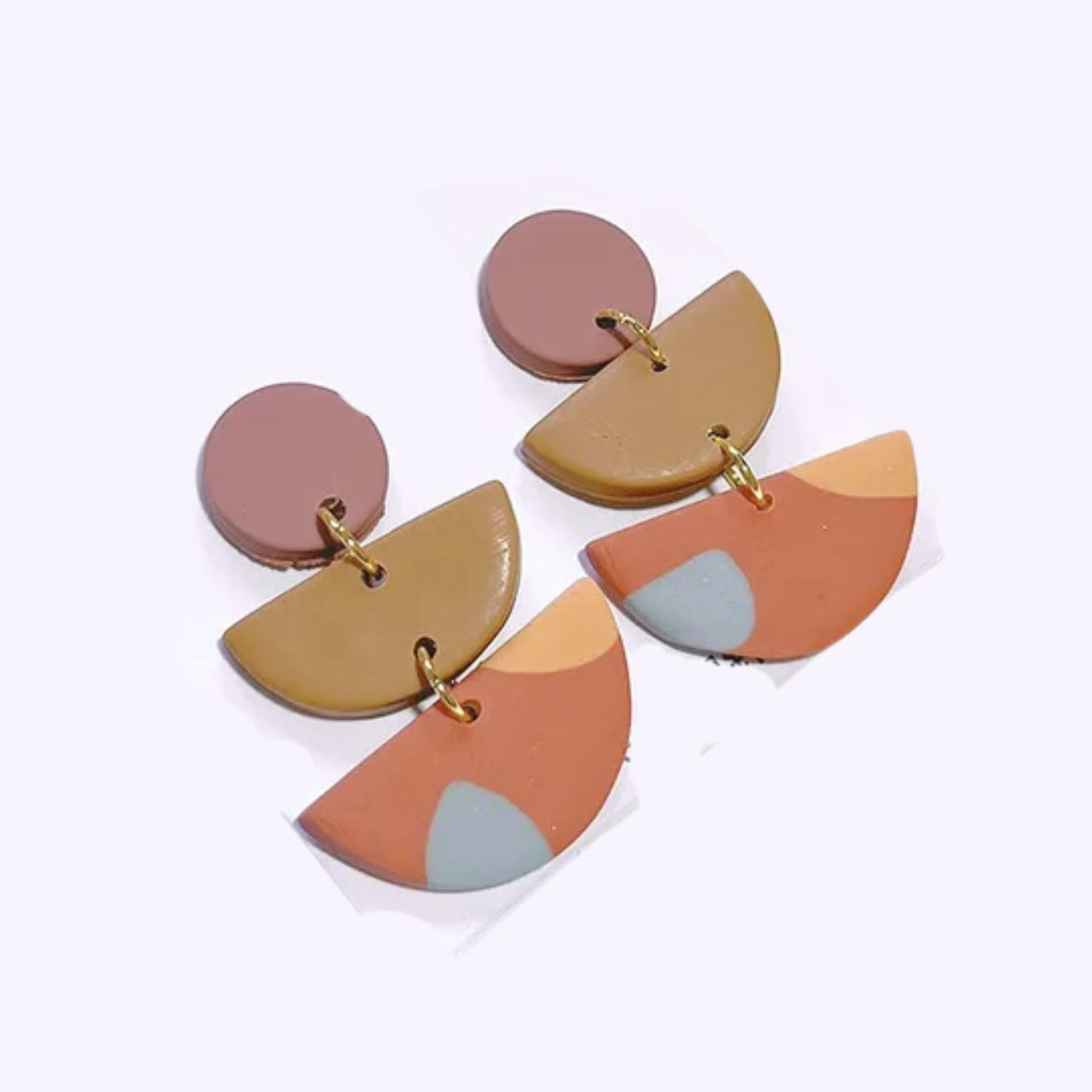 Aretes en forma irregular en colores café, estilo boho.