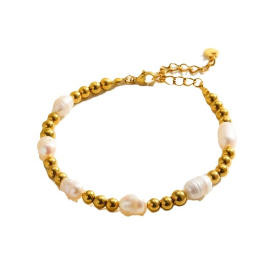Pulsera de cuentas de acero inoxidable y perlas cultivadas.