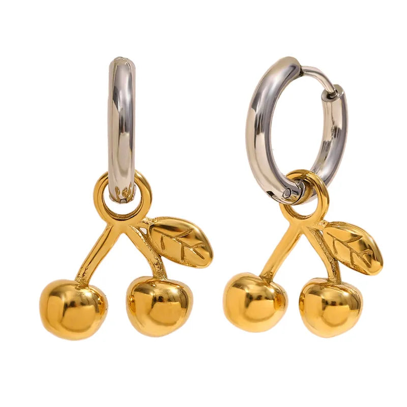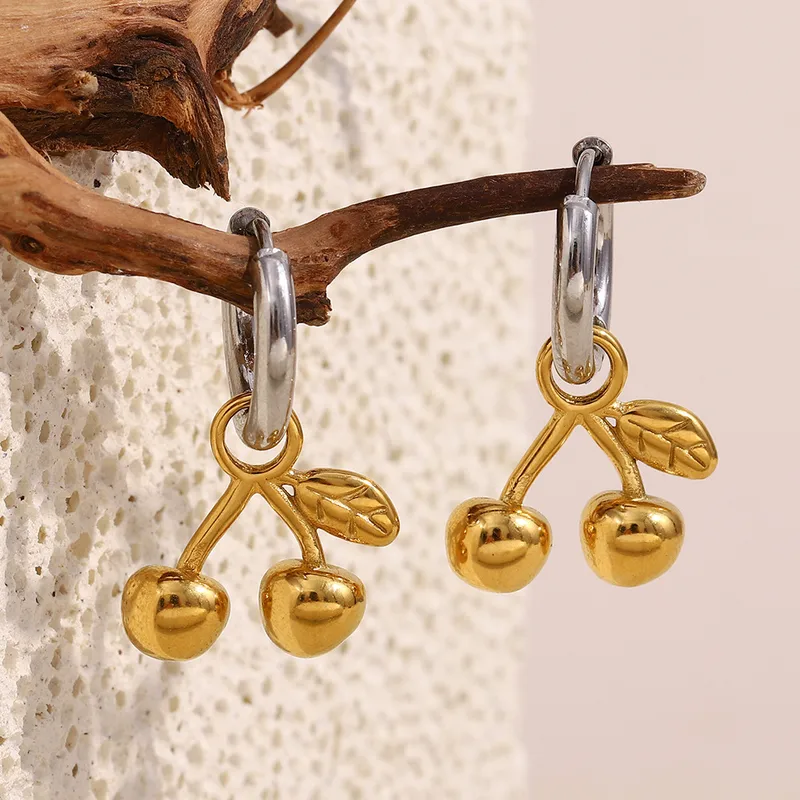 Hoops en acero inoxidable con dije de cerezas colgante.