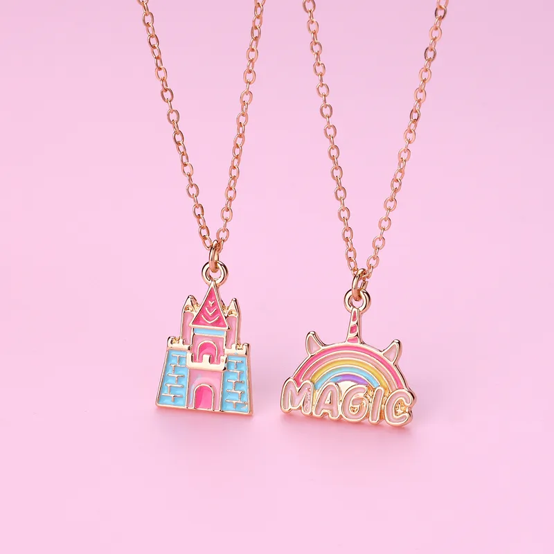 Collar de cadena de aleción con dije esmaltado de diferentes figuras .