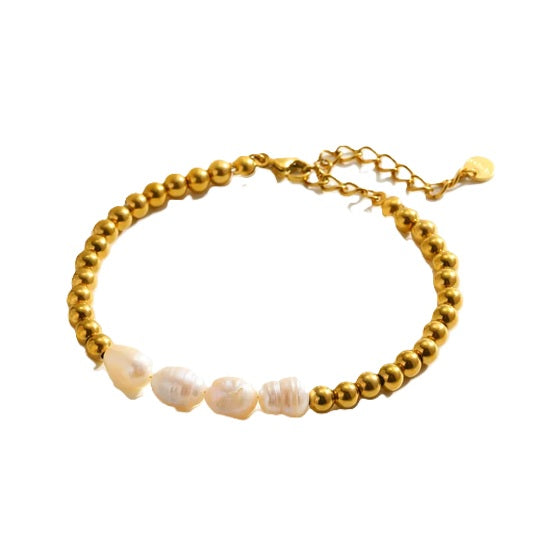 Pulsera de cuentas de acero inoxidable y perlas cultivadas.