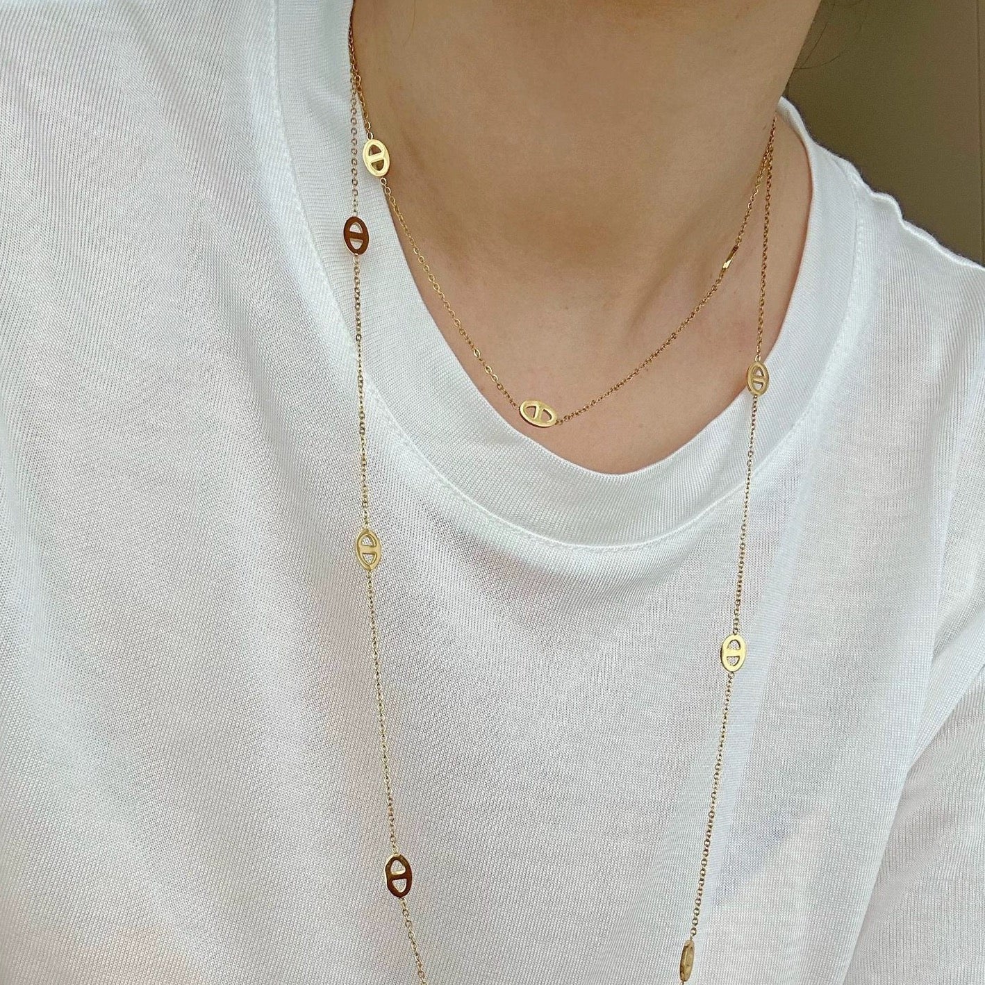Collar largo de cadenas de acero inoxidable con dije pig nose.